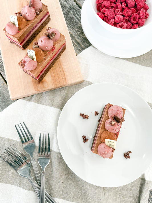 Fournisseur :L'atelier sucré par Marie-Ève LangloisFramboises et pistache - Portion individuelle