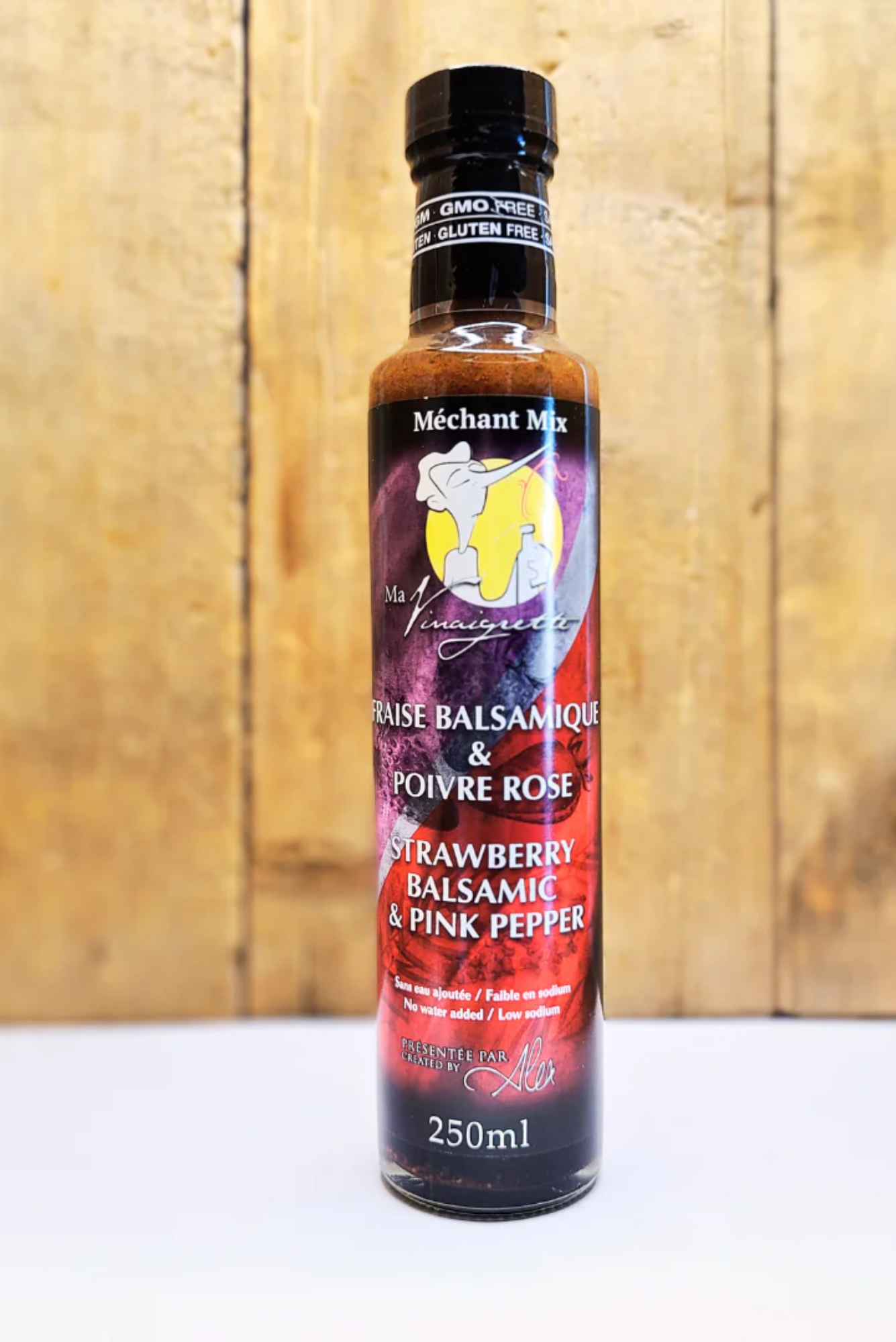 Vinaigrette Fraises & Balsamique. Chic en bouche, elle est tout simplement délicieuse avec la salade boston, d’épinards, mixte ou roquette. Ajoutez s'y des fruits des champs, quelques morceaux de bleu, de chèvre ou de brie. Comme sauce de finition, elle rehaussera à merveille vos viandes de gibier, tels que le canard ou l’orignal.